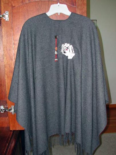 Posted: September 30, 2007 Filed under: Apso Aficionados Leave a commentOkay…Kathy’s probably going to write to me again, telling me not to feel like I have to share her handiwork with everyone… But, how can I resist! Besides, I told her the rest of you enjoy her creations. Look at Vickie’s Dante stitched on this wrap! I’d share Vickie’s comments, but can’t find that particular email this morning.