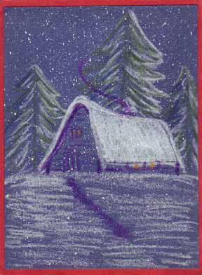 This was done looking out the bay window in the kitchen of the farm house, the house where my sister Lori now lives. Notice the two cats sleeping in the window. Look at the trees, cottonwoods instead of pines. Look at the snow on the ground.