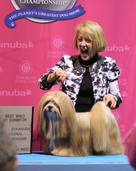 Becky sent this “candid” taken right after I won BBE and before the Eukanuba photographer and Judge came for the Professional picture…….guess I couldn’t contain my how thrilled I was !!