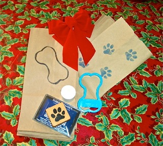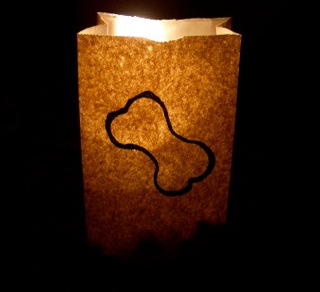 For the critter loving folks in your life, the above luminarias (little lanterns) cost close to nothing, but a bit of time! Stamp plain lunch sacks with a pawprint design and/or trace around a bone shaped cookie cutter, then outline in black marker. For indoor use, those little battery powered candles work like a charm…outdoor– use kitty litter in the bottom of the bags with tea candles. The luminarias are a Southwest tradition.