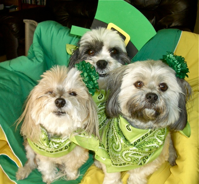 I love that two apsos are smiling for the photo session. How do you get them to do that and stay dressed up? Smiles for St. Patrick’s Day