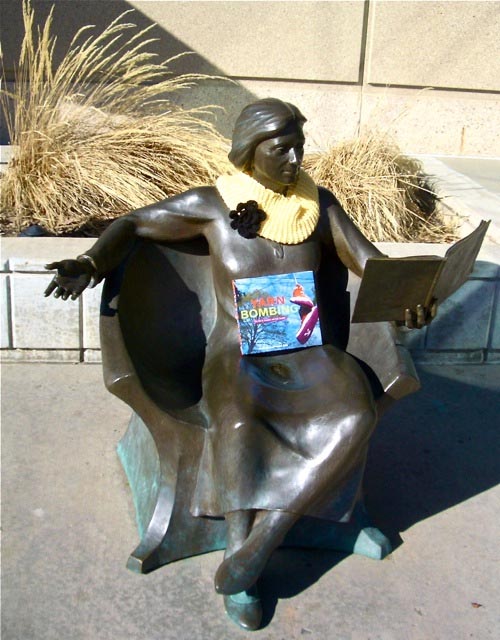 It’s a beautiful day for yarnbombing…her dress was much toooo plain!!