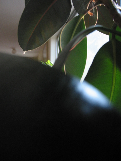 My home is filled with things I love, most remind me of someone I love. In the background of this photo I see Dante, Fernando, Julie, Ron. When I stop and observe my surroundings the people – and a dog or four – of my life are there with me. Last night sitting in the chair with Laura, across the room was the rubber tree mom sent me on Mountain Pet Grooming’s opening day in our new location. July 1995.