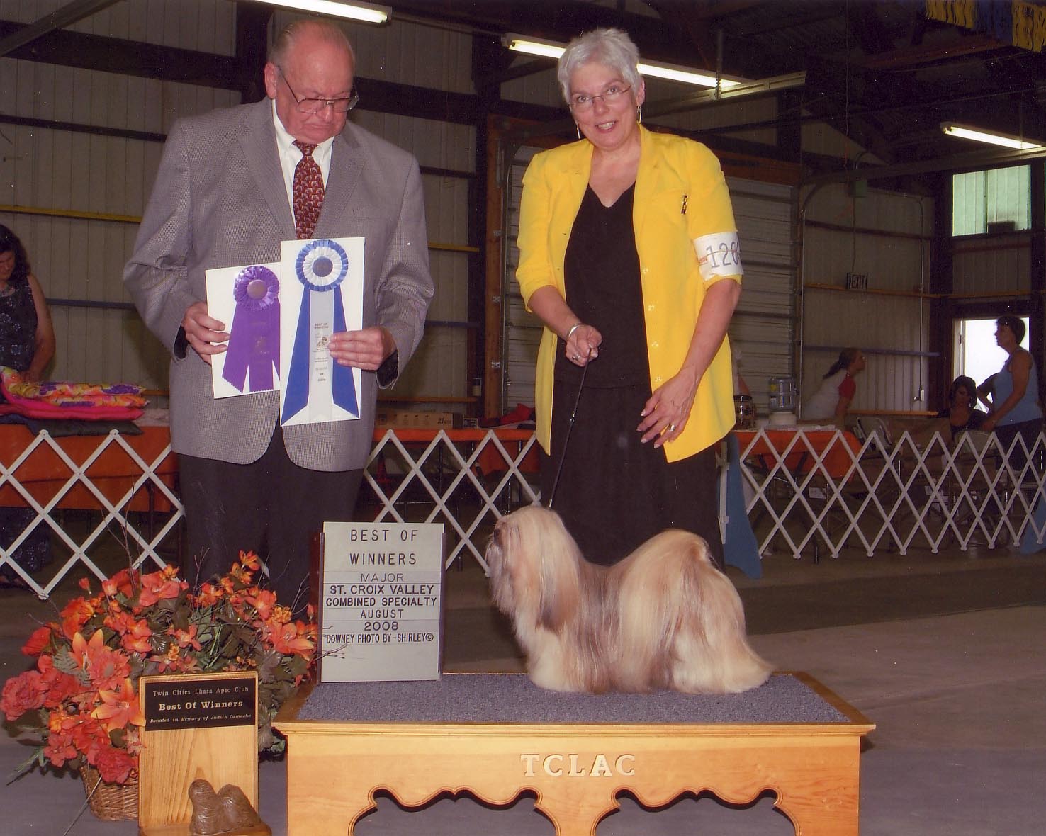 Edie being awarded Best Puppy in Specialty, August 23, 2007.