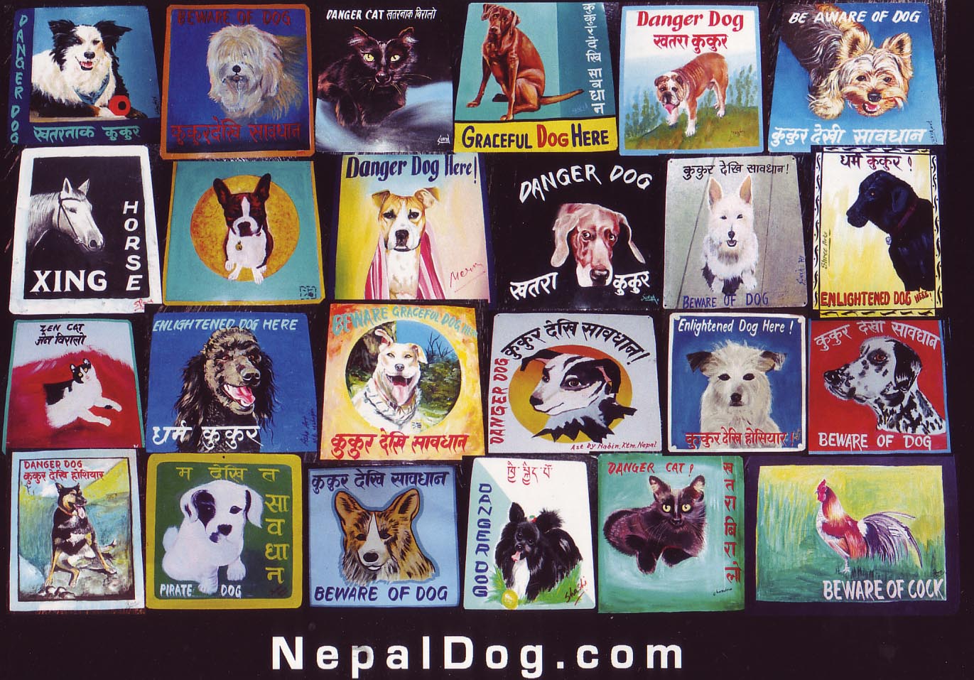 You can commission a sign through NepalDog.com. Each commission is given to at least 3 signboard artists – giving 3 people work, the pet owner a choice and museum shops Nepali folk art. No money is accepted up front. If you don’t like any of the 3 choices, you pay nothing.