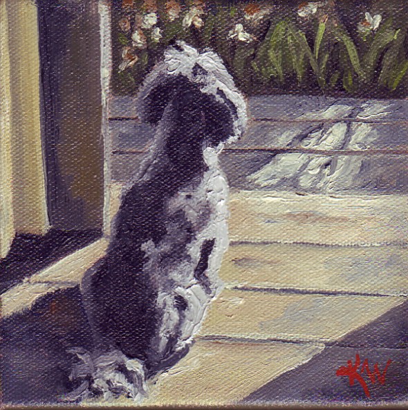 Posted: July 5, 2010 Filed under: Art and Photography, Gompa Lhasa Apsos 1 CommentTime – and ultrasound – will tell, but two Gompa litters have been bred! Yippee!!! For those interested, check out Center Stage. I spent much of the weekend adding photos and creating links for individual dogs within the anticipated litters. Each individual pedigree page starts with artwork of that dog, moves to that dog’s pedigree, followed by photos. And, on occasion, correspondence regarding that dog. Haven’t added all our words to Panchen’s page, but I used “Panchen on the Porch” by Katy Widger to start his page. I love this painting!!