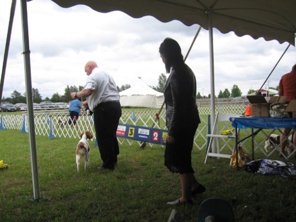 Kaylee judged her first assignment on Friday, June 6 at the Brittany Specialty. Her entry was only 4, which actually made her job more difficult. She did a great job, on a cold, windy afternoon. I believe her Best in Sweeps was a 9-12 month old bitch.